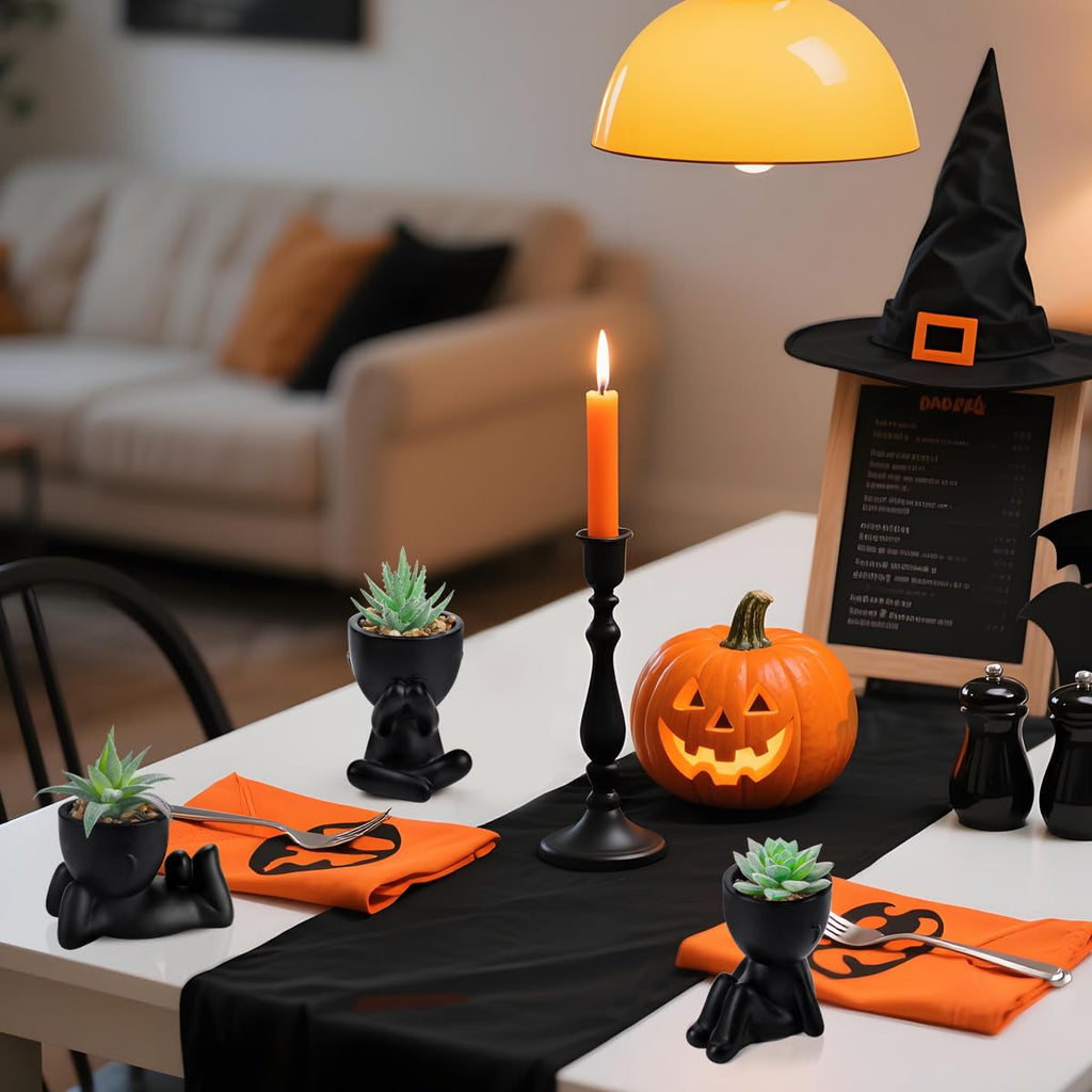 Use scenarios include office desk accents, living room shelves, or Halloween displays. The black color provides a contemporary accent and pairs with varied decor styles. Compatible with other artificial plants, these pieces offer instant greenery without ongoing care.